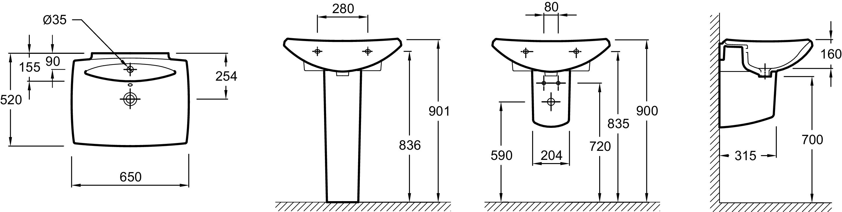 | Тип раковины | Подвесная, С полупьедесталом, С пьедесталом |